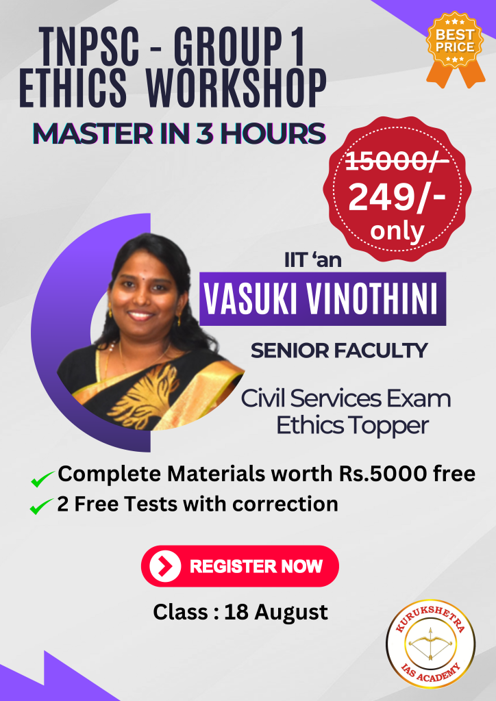 Are you preparing for the TNPSC Group – 1 exam and looking to enhance your knowledge in Ethics? Look no further! We are thrilled to offer the FIRST specialized Ethics Workshop in Tamil Nadu designed exclusively for TNPSC Group – 1 aspirants.